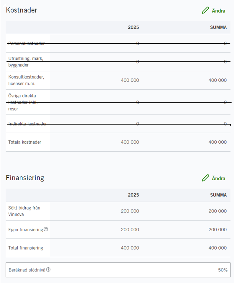 För mer detaljerad information om vilka kostnader som Vinnova kan finansiera, se Anvisning till stödberättigande kostnader